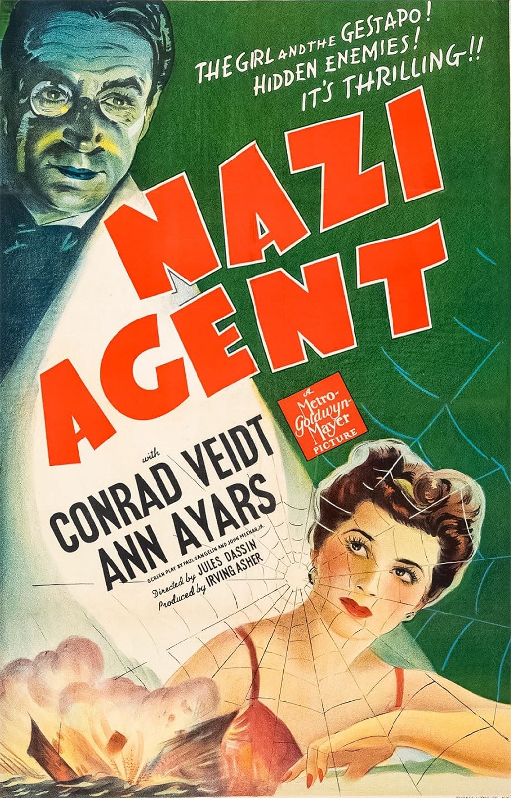 Nazi Agent presents a rare opportunity to see the great Conrad Veidt play a lead role (as twin brothers with opposite personalities and values, no less) in a well-preserved sound film with a solid, serious theme and lasting value. Although this is obviously a "B"-level production made on a low budget, the brisk direction by Jules Dassin, the tight and literate script and some very good supporting players, make it as satisfying as many an "A" effort.
