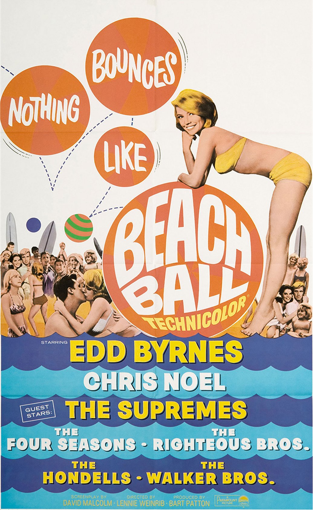 Edd Byrnes tries to get an ethnic-music-studies grant to buy instruments for his rock and roll group, the Wigglers. College-finance-committee members Chris Noel, Gail Gilmore, Mikki Jameson and Brenda Benet uncover the scam and tear up the check, but the Wigglers play a Long Beach, California custom-car show in drag and win first prize. The Supremes do "Come to the Beach Ball with Me" and "Surfer Boy;" the Four Seasons sing their 1964 hit "Dawn;" the Hondells sing Brian Wilson's "My Buddy Seat;" the Righteous Brothers do "Baby What You Want Me to Do;" and the Walker Brothers cut loose with "Doin' the Jerk." Gary Kurtz of "Star Wars" fame was the assistant director. ~ imdb |