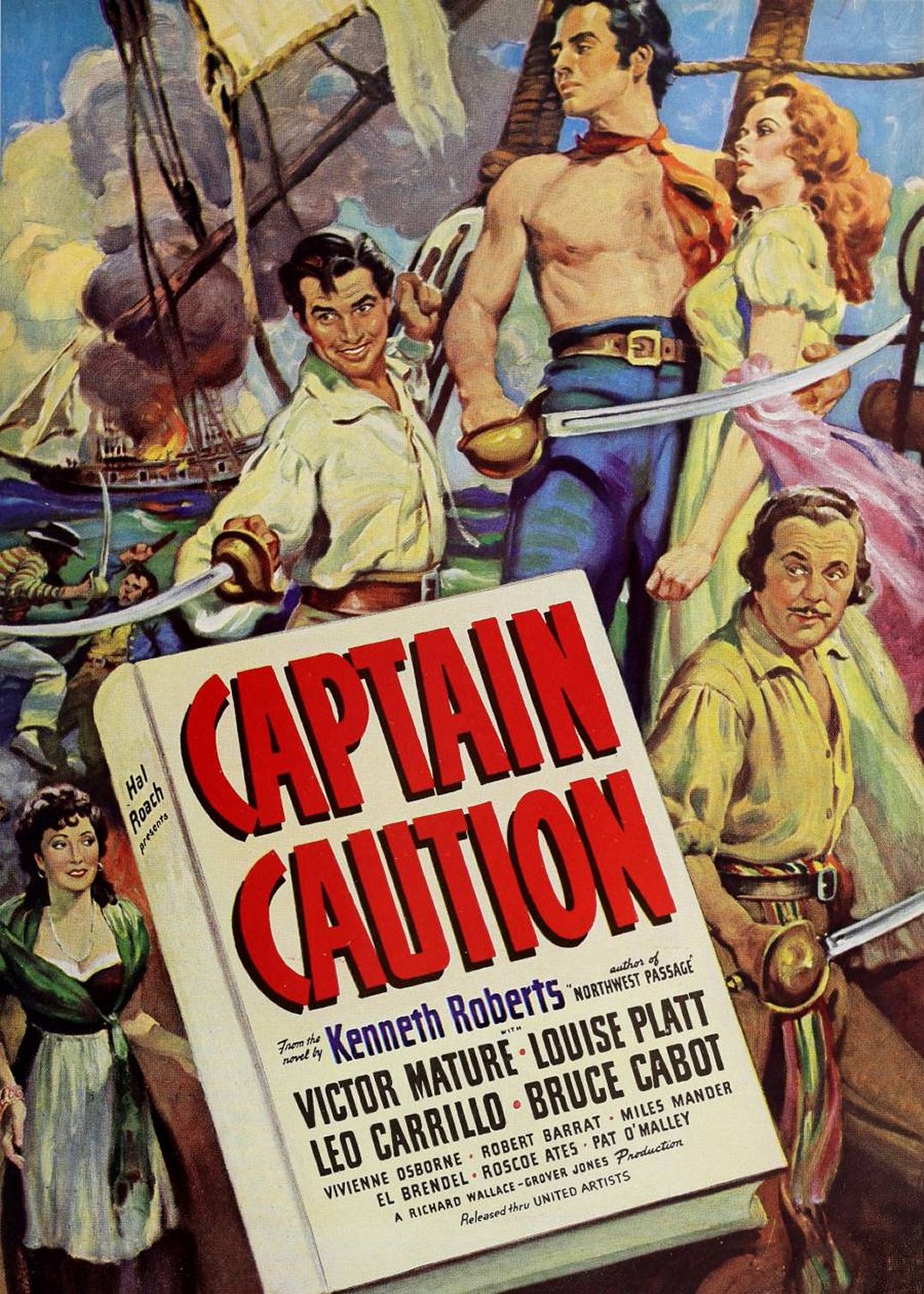 An early Victor Mature effort, CAPTAIN CAUTION tells the tale of a merchant vessel assaulted by the British at the start of the War of 1812. The vessel's captain is killed and his daughter assumes command. She decides to pursue the British and is given the choice of Mature or Bruce Cabot for first mate. ~ imdb |