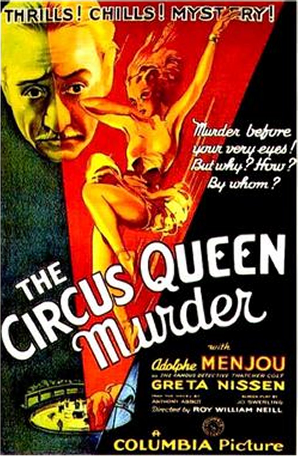 He soon becomes involved in murder and mayhem when a travelling circus comes to town and the circus queen, Josie La Tour (Greta Nissen) slips from a trapeze-perch when someone shoots a poisoned arrow in her back. Who plugged Josie La Tour? Eliminate Miss Kelly only. ~ imdb |